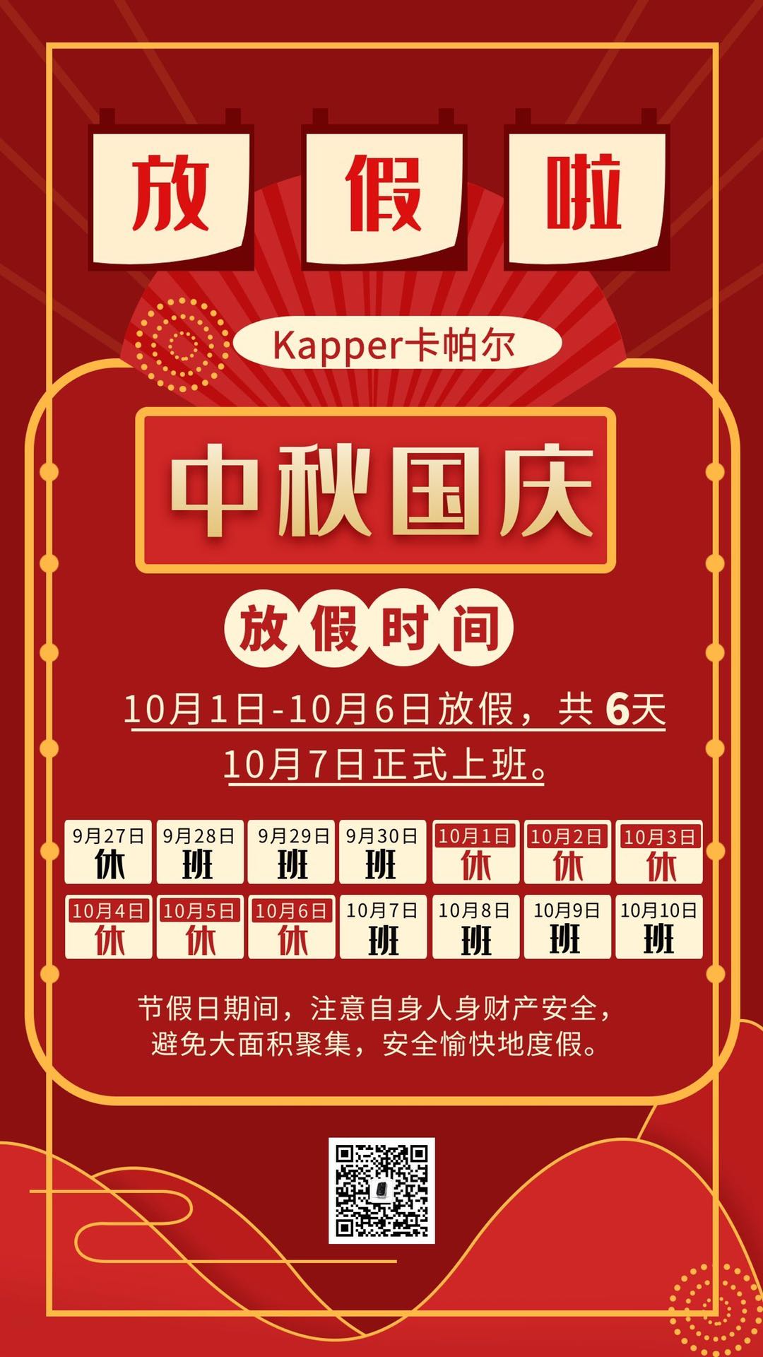 Kapper卡帕爾中秋國(guó)慶放假通知!