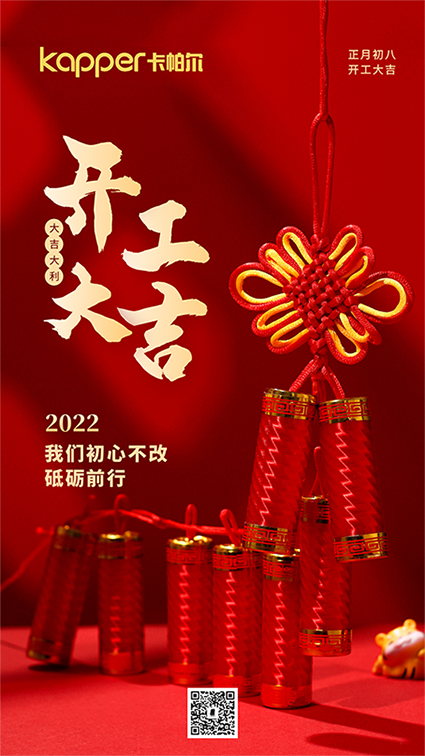 2022年正月初八,開工大吉!Kapper卡帕爾新的一年以新的風(fēng)貌、新的狀態(tài)竭誠為您服務(wù)!愿您虎虎生威,虎年大吉,財源滾滾,生意興隆!