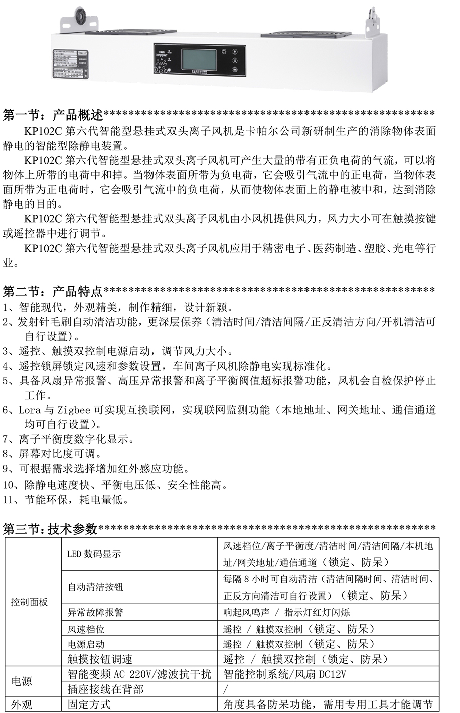 KP102C第六代智能型懸掛式雙頭離子風(fēng)機