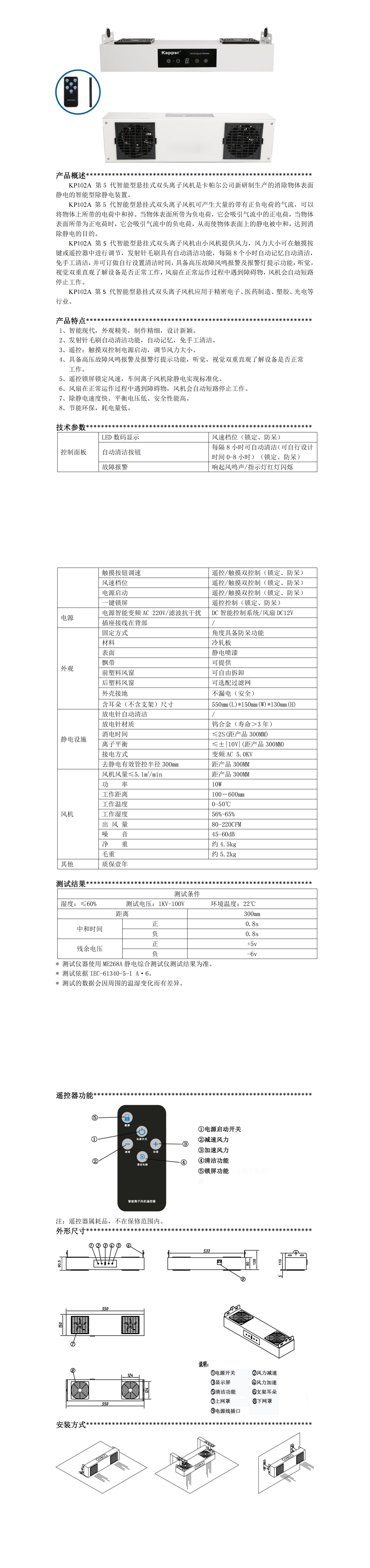 KP102A第五代智能型懸掛式雙頭離子風(fēng)機
