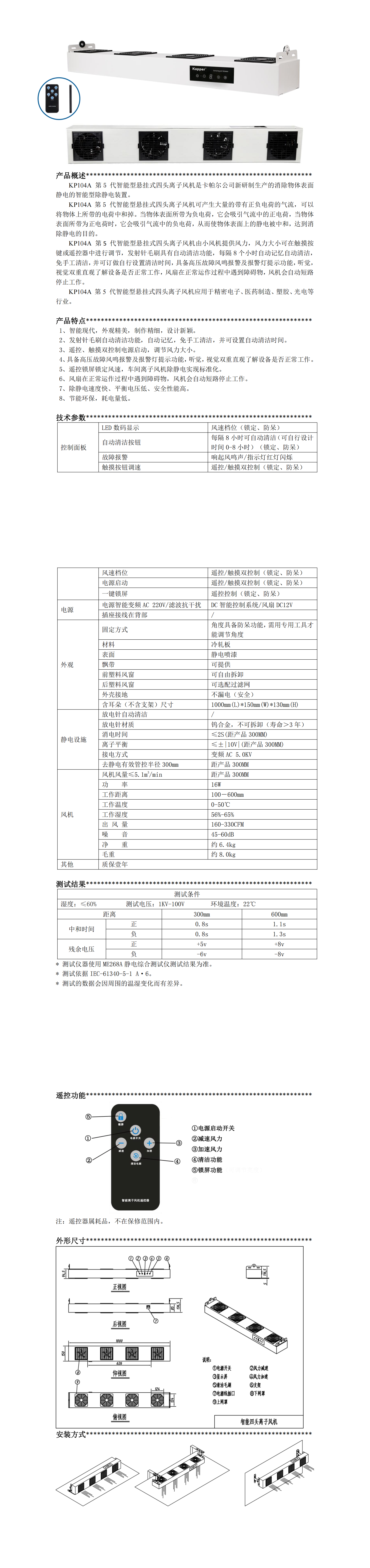 KP104A第五代智能型懸掛式四頭離子風(fēng)機(jī)
