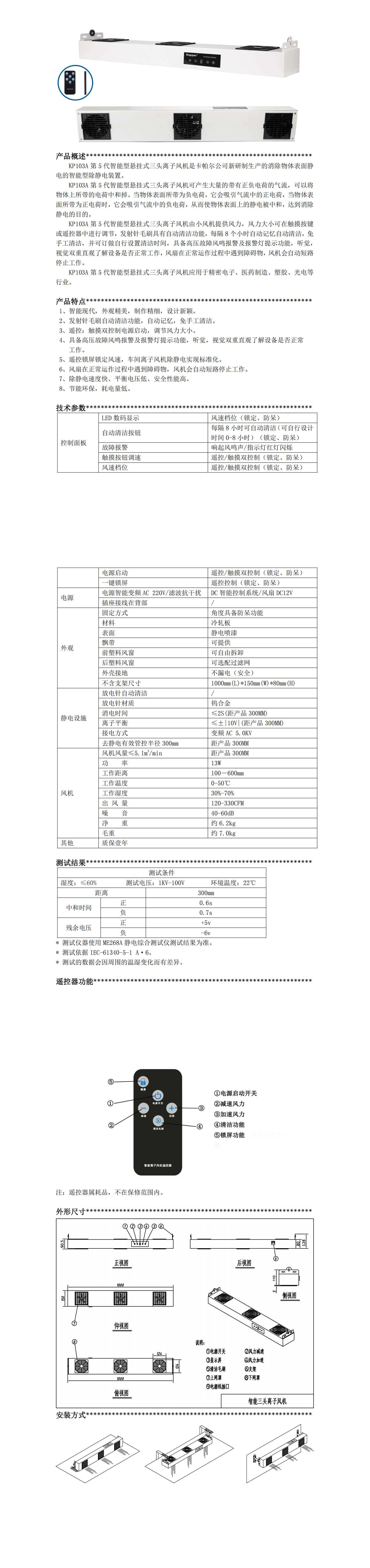 KP103A第五代智能型懸掛式三頭離子風(fēng)機(jī)