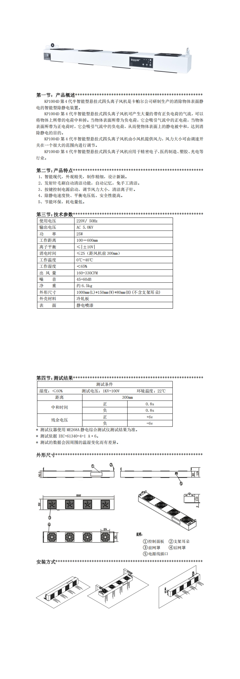 KP1004D第4代半智能型懸掛式四頭離子風(fēng)機