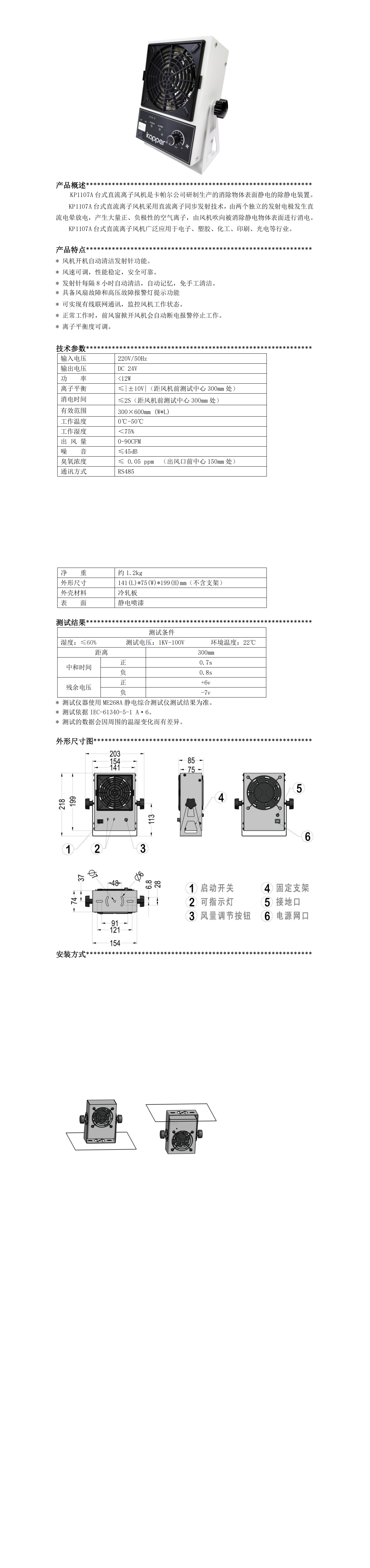 KP1107A 臺(tái)式直流離子風(fēng)機(jī)