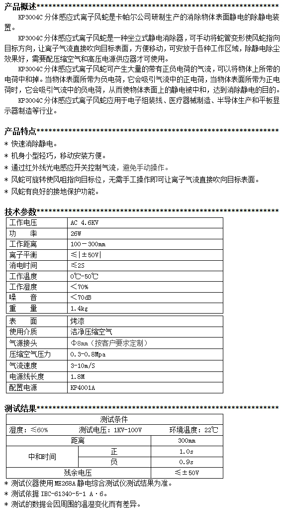 KP3004C第三代分體感應(yīng)式離子風(fēng)蛇