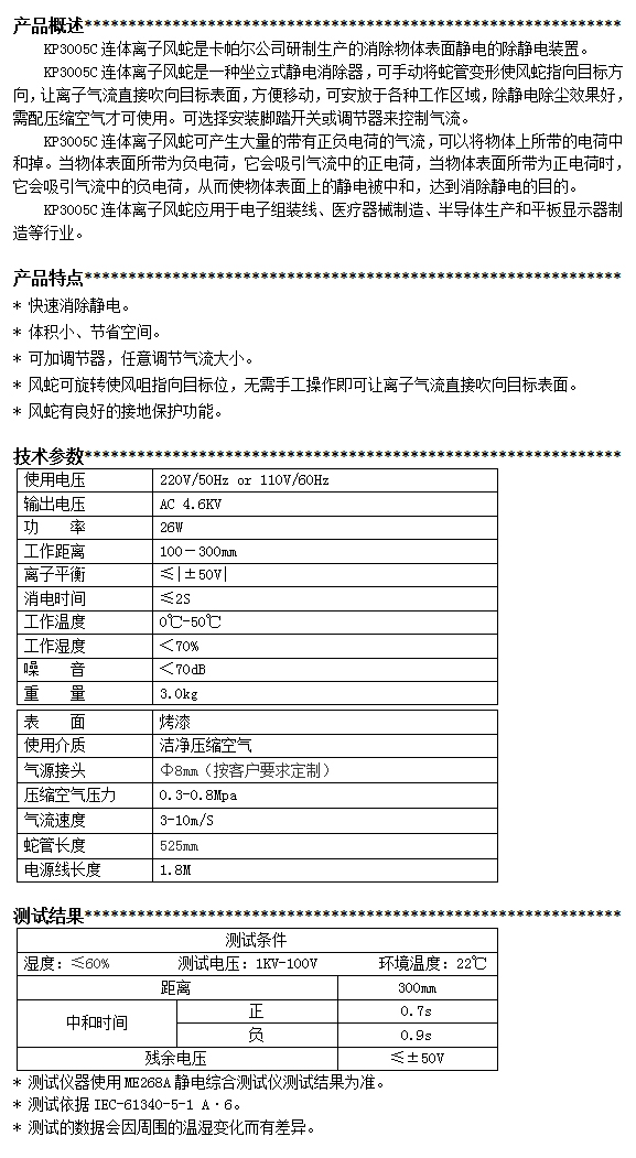 KP3005C第三代連體離子風(fēng)蛇