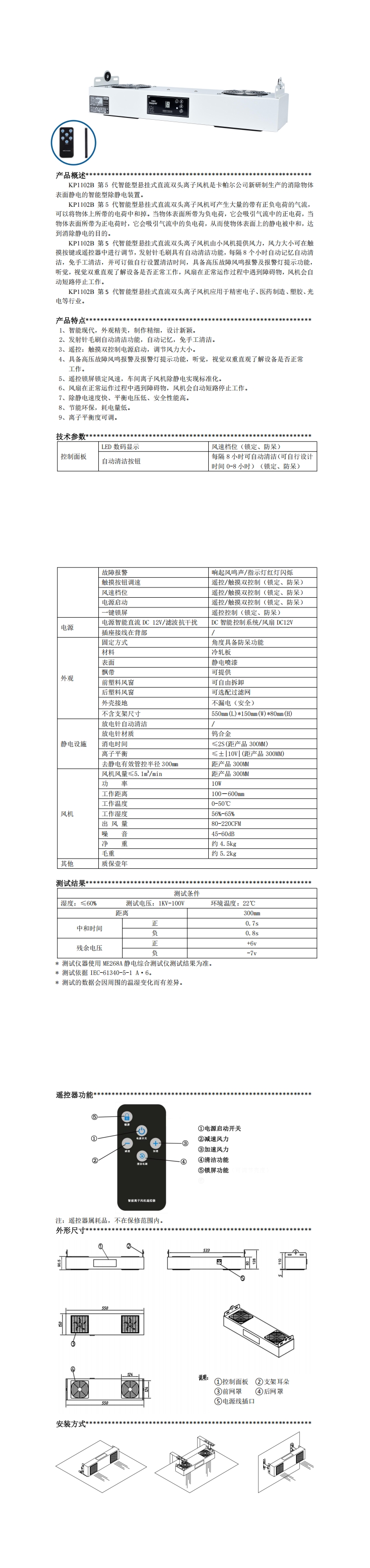 KP1102B 第 5 代智能型懸掛式直流雙頭離子風(fēng)機(jī)