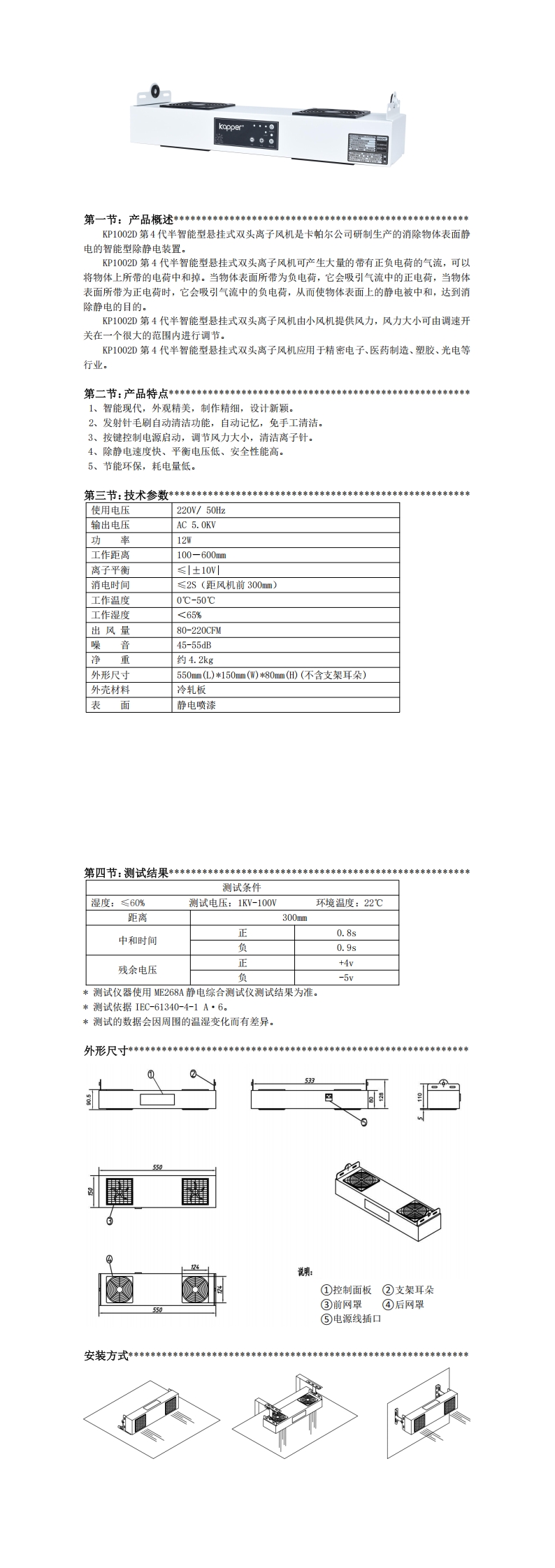 KP1002D第4代半智能型懸掛式雙頭離子風(fēng)機