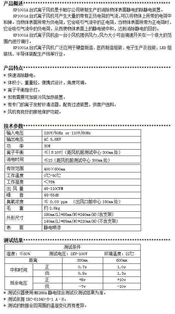 KP1001A第三代臺(tái)式離子風(fēng)機(jī)