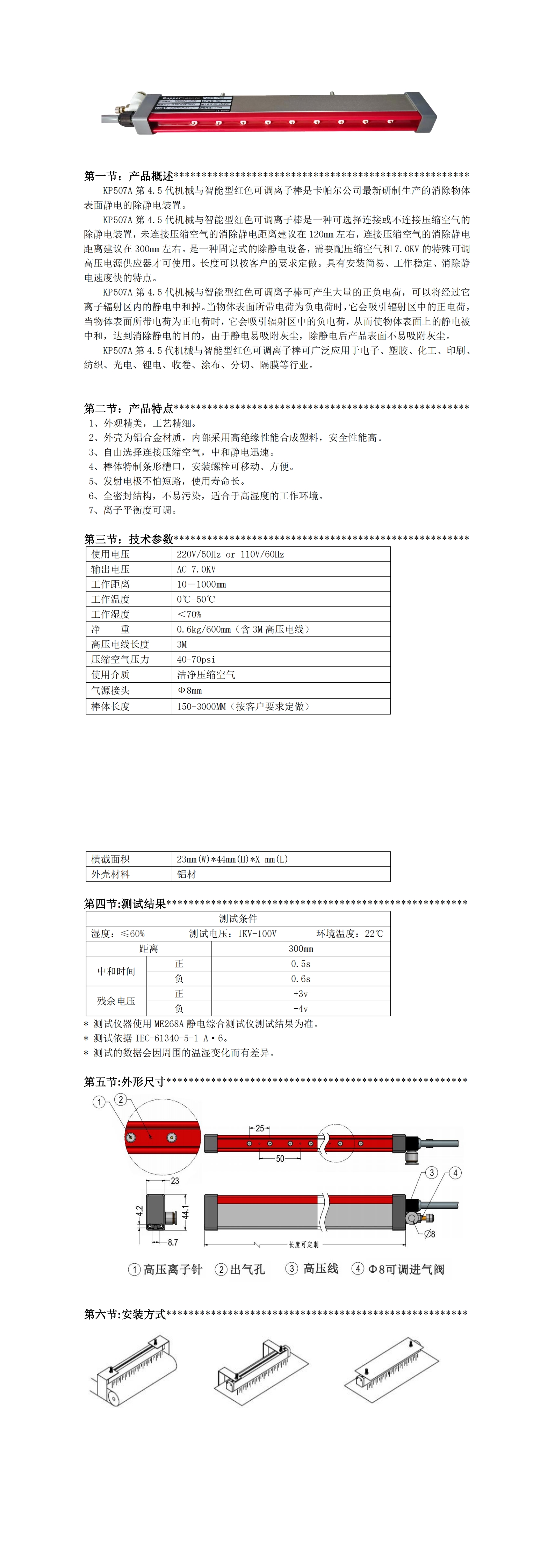 KP507A第4.5代機械與智能型可調(diào)離子棒