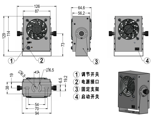 87(L)*64.6(W)*114(H)mm (不含支架) |