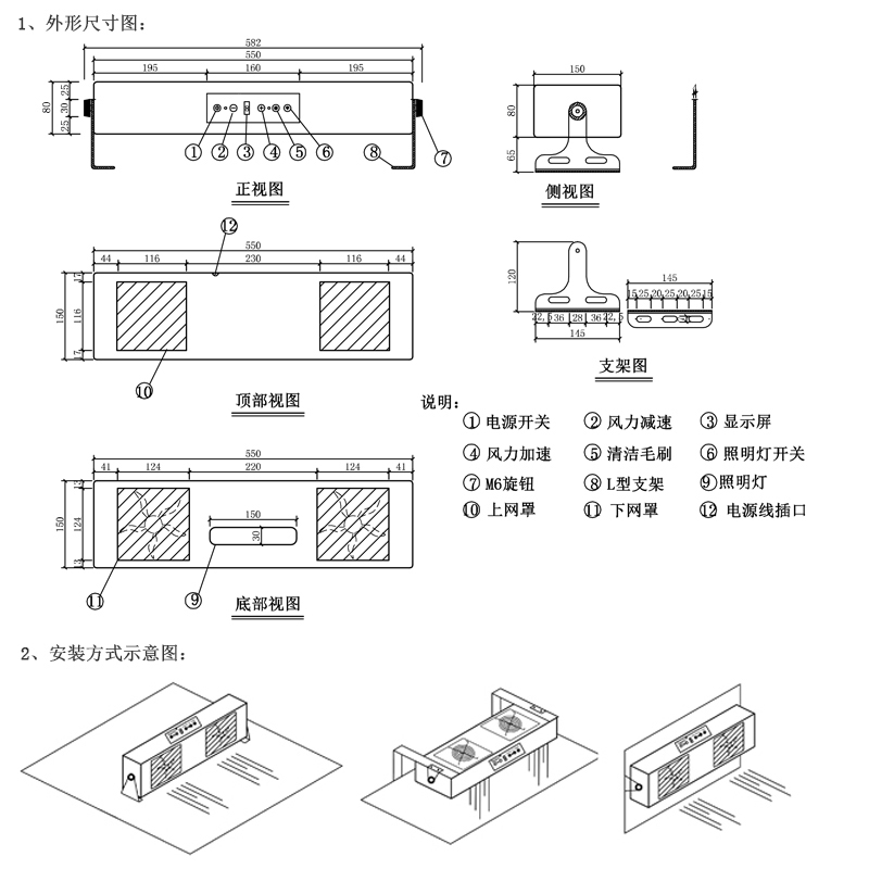 KP102A 第5 代智能型懸掛式雙頭離子風機可產生大量的帶有正負電荷的氣流,可以將物體上所帶的電荷中和掉。當物體表面所帶為負電荷,它會吸引氣流中的正電荷,當物體表面所帶為正電荷時,它會吸引氣流中的負電荷,從而使物體表面上的靜電被中和,達到消除靜電的目的。